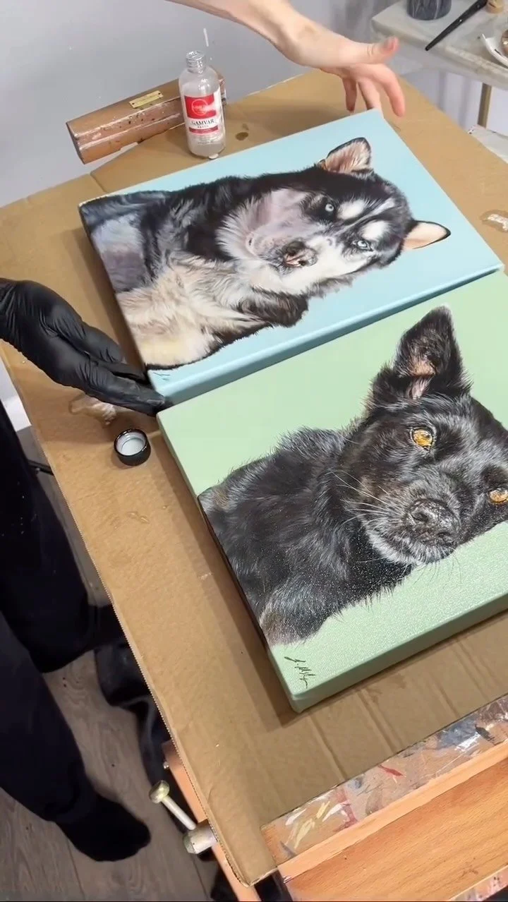 “I had my two dogs commissioned and they turned out absolutely beautiful! Jodie was a pleasure to work with, sent work in progress photos and was very thorough. The paintings arrived quickly and in perfect condition. Would highly recommend Jodie!”