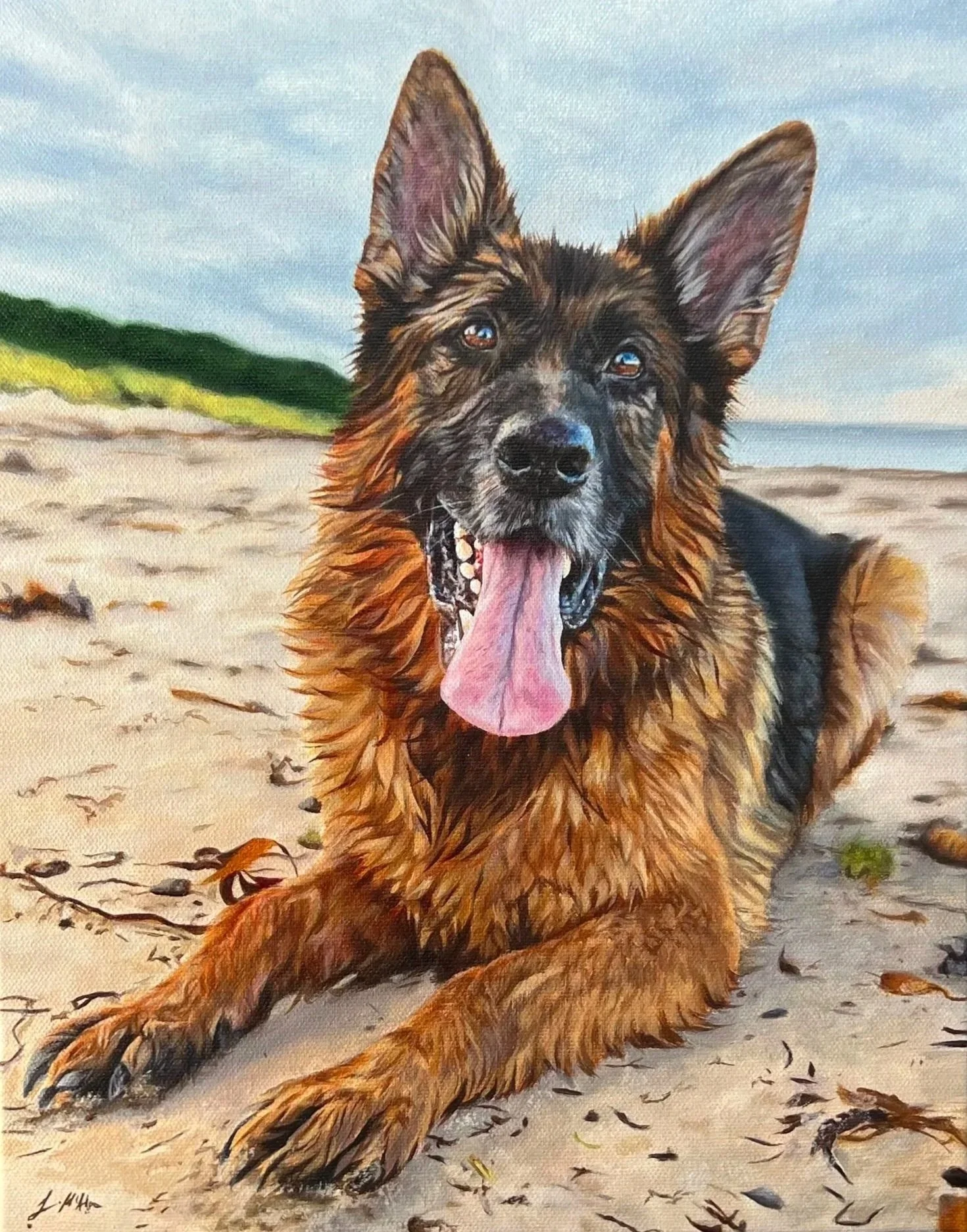 “I don’t know where to begin! She captures everything single element of our Lokii, she made all his little characters come to life again. We are in absolute awe of the painting. Jodie was very supportive through out the whole experience. The shipping was very quick, we couldn’t wait to open it, with the nice message inside to go with it meant a lot. We will definitely be asking Jodie to paint our dogs in the future!”